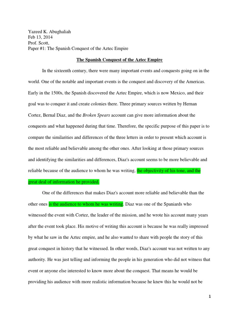 History Paper 1 Final Draft Hernan Cortes Aztec